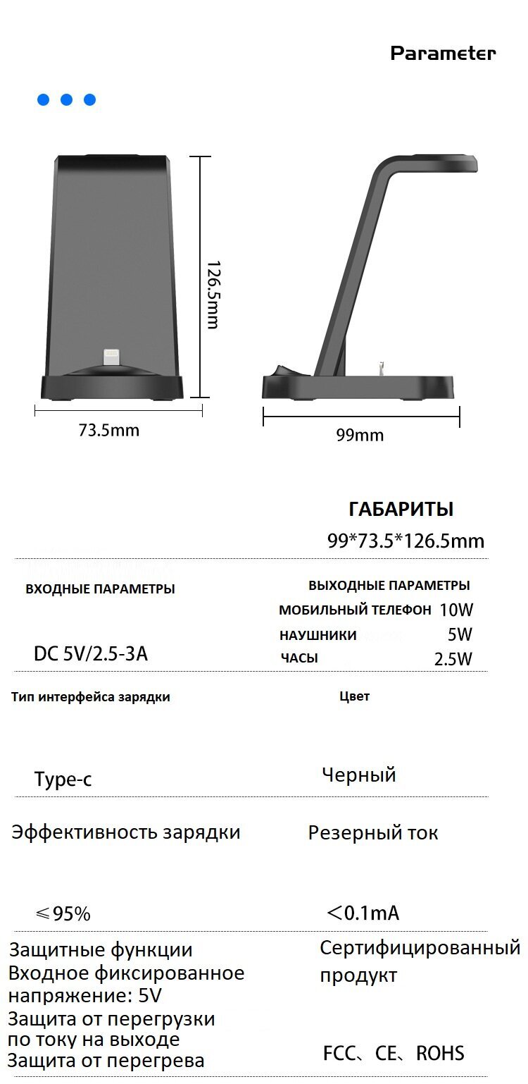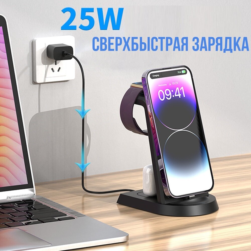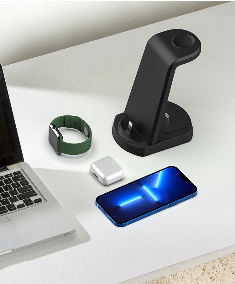 Многофункциональное беспроводное зарядное устройство 3 в 1 - это один из самых запоминающихся подарков, который может быстро заряжать сразу 3 гаджета одновременно: телефон, наушники и часы.