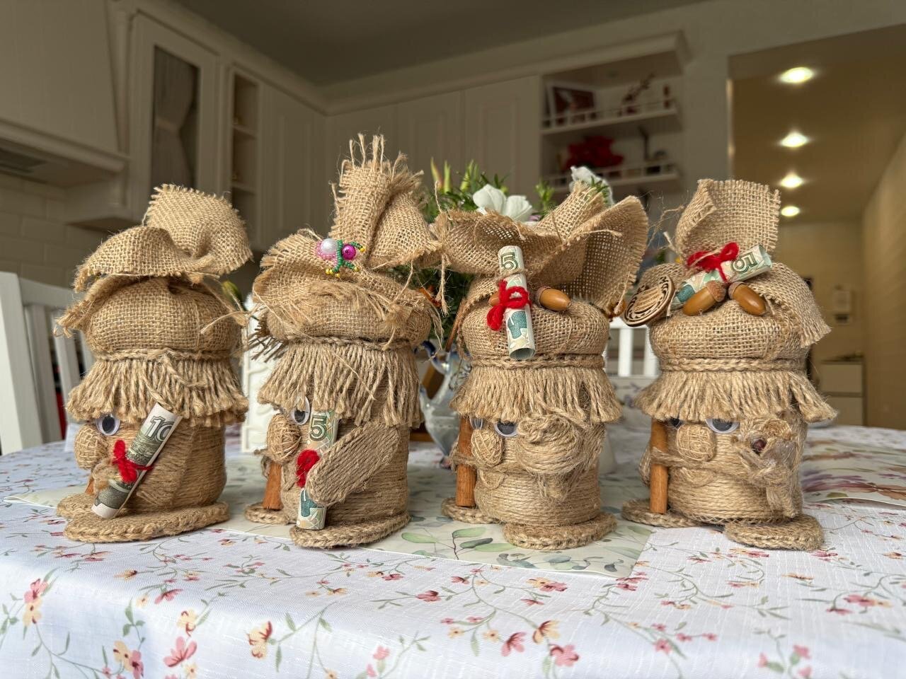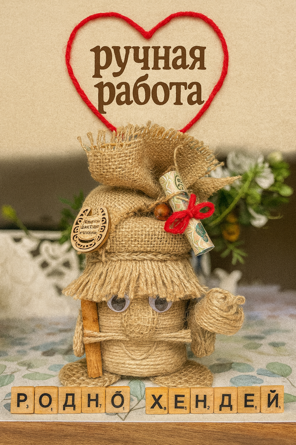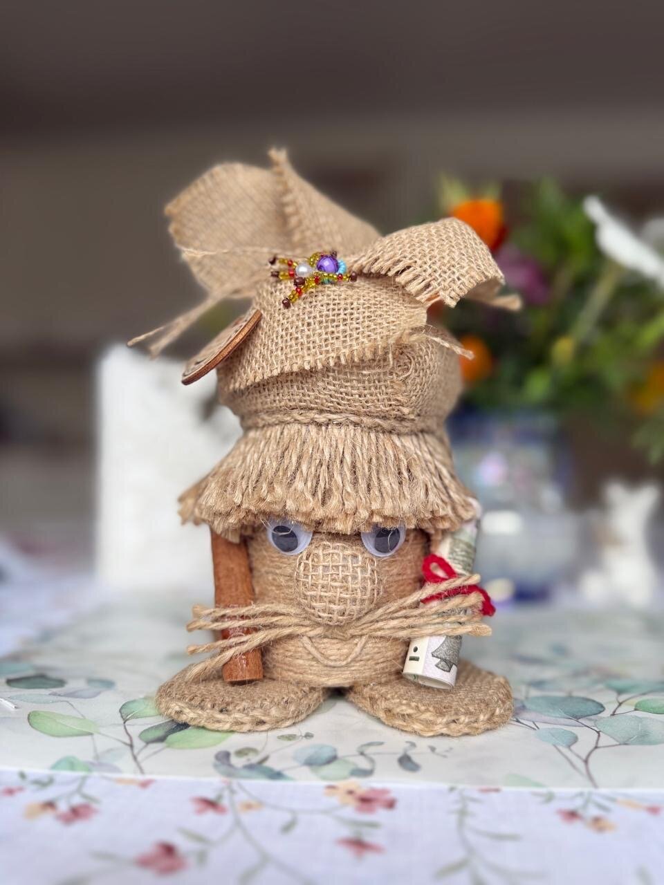 любимому учителю, отличный подарок мужчине, подруге, девушке, парню, папе, брату, бабушке, сестре, для мамы, для девочки. Ваш начальник тоже обрадуется такому подарку, особенно, если у него есть баня. Домовёнок– это оригинальный и запоминающийся подарок, который понравится каждому. Он подойдет как для взрослых, так и для детей, и станет отличным выбором на любой праздник. С древних времен люди считали домового добрым духом, которые защищает дом и ограждает её обитателей от невзгод. Существует поверье, что домовой оберег обретает во всех домах, где живут люди. Оберег домовой способен уберечь от отрицательной энергии и принести счастье в дом. Наши предки были уверенны в том, что в каждом доме обитает хранитель, который оберегает свое жилище и его хозяев. Чтобы заслужить его хорошее отношение славяне уважительно относились к «дедушке» и постоянно его подкармливали. Некоторые даже выделяли для него отдельное место в жилище. Считается, что появление в квартире домового – к добру. Домовой оберегает дом от различных бед, поддерживает семью, следит за чистотой в жилище и создают уютную атмосферу, указывает на поломку бытовых приборов, играет с детьми и домашними животными, привлекает финансы в семью и предупреждает о грядущей опасности. Хорошему хозяину домовой станет верным другом и помощником. Он не допустит пожара или кражи, разбудит утром и напомнит о важных делах. Регулярно беседуйте с домовым, рассказывайте о новостях. Ведь он является полноценным членом семьи, владеющим магией. Наши предки считали, что в любом доме есть домовёнок, оберегающий дом и его обитателей от неприятностей. А вдруг и правда седовласый старичок будет из-за угла наблюдать за Вашим домом и за Вами и приносить счастье и удачу! Особенно приятно преподнести домового на новоселье, а в сундук можно положить деньги или дополнительный сюрприз. Подарок на новоселье должен обладать особой магией, чтобы в семье был всегда уют и порядок! Домовенок ручной работы каждый по своему отличается и второго такого не встретить. Оберег для дома, домовенок Кузя хранитель очага и неотъемлемая часть каждого дома. Домовой — это персонаж славянской мифологии, который считается духом домашнего очага. Он обычно изображается как маленький старичок с бородой, который заботится о доме и его обитателях. Домовой охраняет семью, следит за порядком и благополучием, а также может помогать в хозяйственных делах. Согласно народным поверьям, домовой обитает в укромных уголках дома, таких как чердак, подпол или за печкой. Плетеный домовой покрыт акриловым лаком. Наше изделие долговечное и очень выгодное приобретение. Украсит ваши фотографии во время фотосессий.