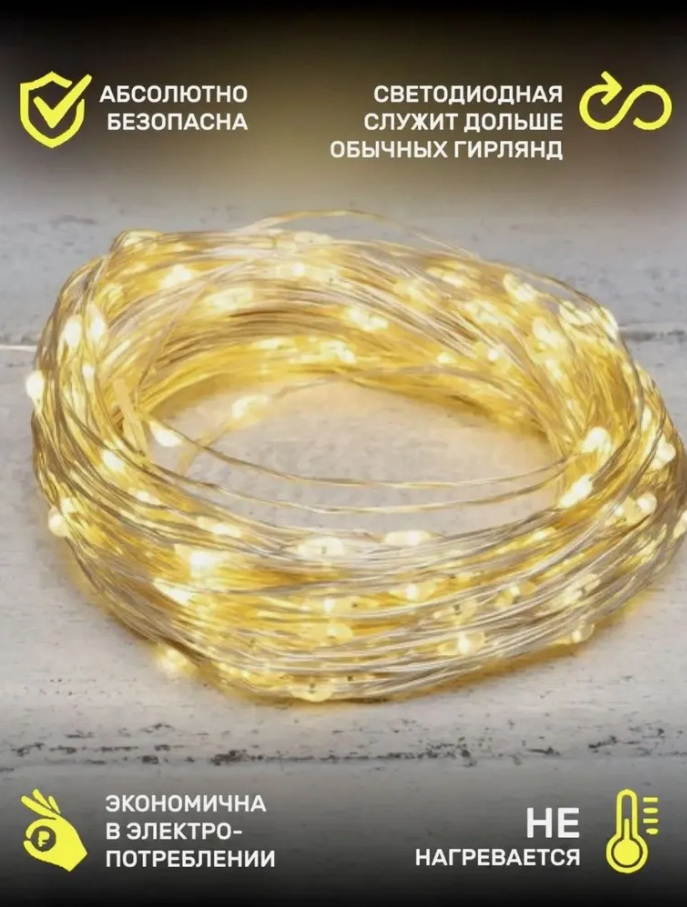 Наша гирлянда - это универсальный выбор, который добавит тепла и уюта вашему дому. Она также может использоваться как украшение для улицы или внутри помещения. Ее гибкость позволяет адаптировать ее к любой форме, что делает ее униальным украшением для вашего дома.