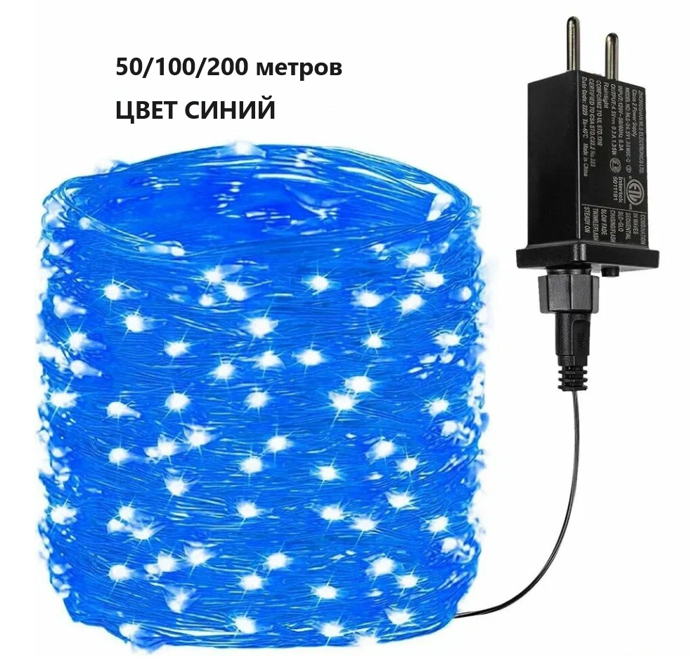 Гирлянда интерьерная "Роса" синего цвета, 50 м