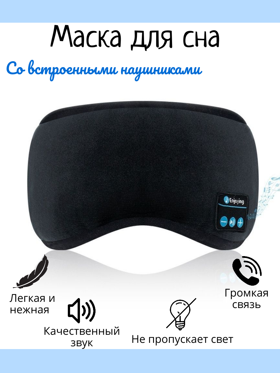 Маска на глаза для сна с встроенными блютуз наушниками. Bluetooth наушники для сна нового поколения. Функционал масок для сна превышает все возможности, это маска для сна и беспроводные наушники 2 в 1. Вы не просто наслаждаетесь музыкой, но делаете это с комфортом для себя. Многоразовая маска для сна для взрослых и детей. Аксессуар для мужчин и женщин. Удобная, мягкая повязка на глаза, не пропускает свет, плотно прилегает к лицу, не растягивается после многократного применения. Наушники имеют долгую портативную работоспособность после подзарядки. Маска для сна как взрослая. Повязка для сна изготовлена из высококачественной ткани, не колется, мягкая, приятная на ощупь. Товары для дома и сна. Идеален в подарок другу, подруге, коллеге, папе, маме, сестре, брату, бабушке, дедушке, жене, мужу просто так, на день рождения и без повода.