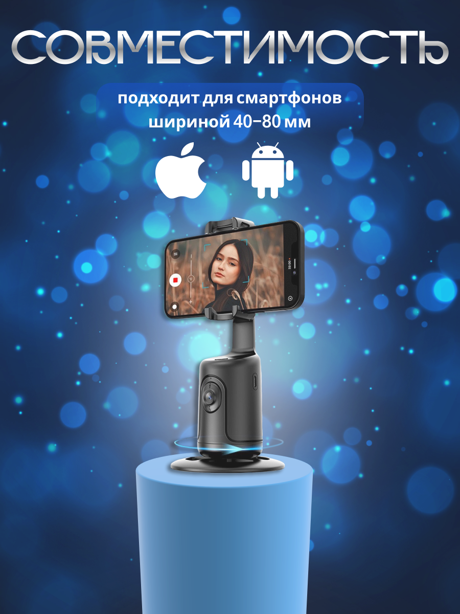 Монопод с функцией отслеживания лица для телефона – универсальное и портативное решение для ежедневных съемок фото и видео. Система Al Smart Core – это уникальный процессор с искусственным интеллектом, способный распознавать движения и жесты. Смарт линзы реагируют за секунды и фокусируются на человеке. Вы можете танцевать, бегать, прыгать – умный штатив будет вращаться по горизонтальной оси на 360. Совершенно простой и удобный в использовании стабилизатор станет идеальным подарком как ребенку, так и взрослому человеку. Девайс для телефона поможет вам в записи широкоформатных видео, проведении стримов, создании контента для различных сайтов и приложений. Также вы можете использовать монопод для семейных, парных фото и селфи.