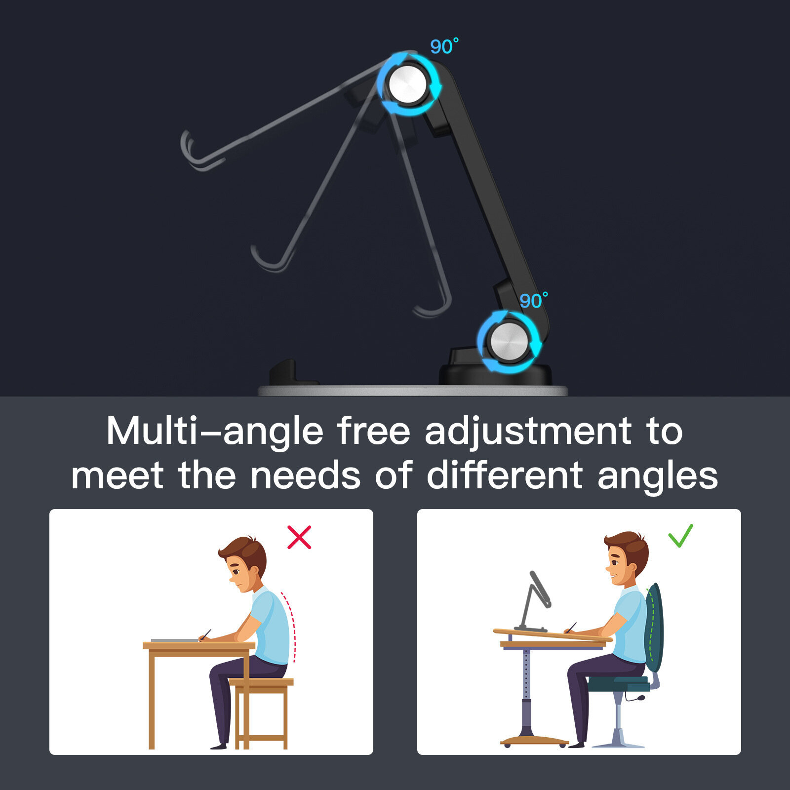 ✅ Благодаря специальной конструкции Вы можете в любой момент менять углы наклона, высоту держателя. Легко настроить высоту и наклон. Максимальная высота 13 см. Каждый шарнир крутится на 270 градусов.