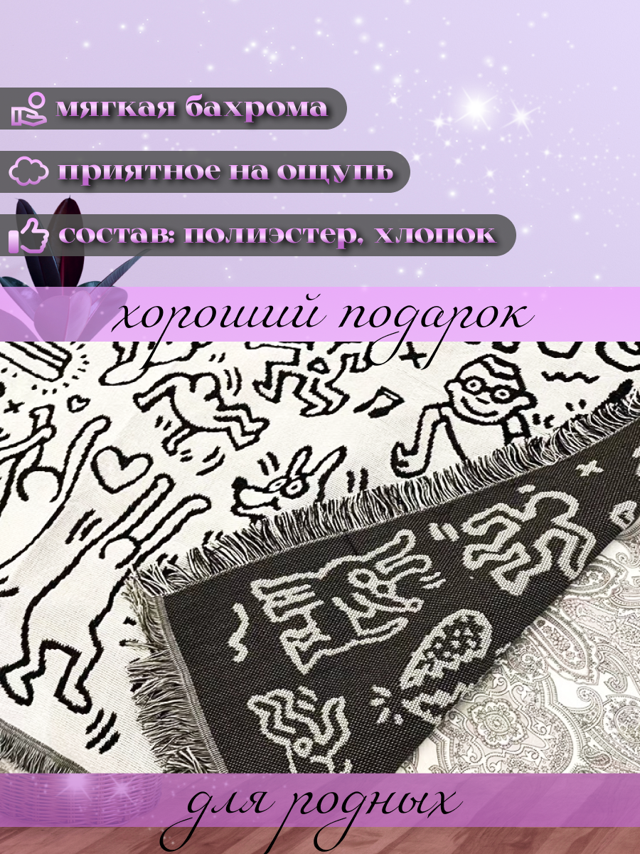 Универсальный плед можно использовать в качестве чехла на небольшой диван, кресло, стул, кресло-качалку или как одеяло на односпальную кровать. Плотная и прочная текстура надежно сохранит вашу мебель, защитит от выгорания на солнце и появления пятен, спасет от острых когтей четвероногих друзей. Накидку также можно использовать как скатерть для стола, полотно на стену, коврик на пол или как лежанку. Ваш питомец будет рад такой лежанке, покрывало согреет кошку или собаку в холодный день. Вы можете взять плед с собой на пикник или на пляж, устроить незабываемый отдых на свежем воздухе, а под вечер укутаться в него. Хлопок отлично сохраняет тепло, при этом у него хорошая воздухопроницаемость, поэтому вы будете чувствовать комфорт и наслаждение!