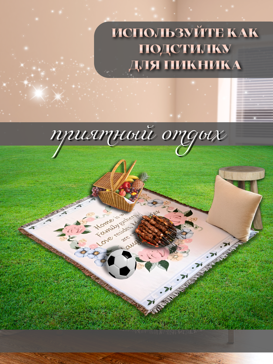 Универсальный плед можно использовать в качестве чехла на небольшой диван, кресло, стул, кресло-качалку или как одеяло на односпальную кровать. Плотная и прочная текстура надежно сохранит вашу мебель, защитит от выгорания на солнце и появления пятен, спасет от острых когтей четвероногих друзей. Накидку также можно использовать как скатерть для стола, полотно на стену, коврик на пол или как лежанку. Ваш питомец будет рад такой лежанке, покрывало согреет кошку или собаку в холодный день. Вы можете взять плед с собой на пикник или на пляж, устроить незабываемый отдых на свежем воздухе, а под вечер укутаться в него. Хлопок отлично сохраняет тепло, при этом у него хорошая воздухопроницаемость, поэтому вы будете чувствовать комфорт и наслаждение!
