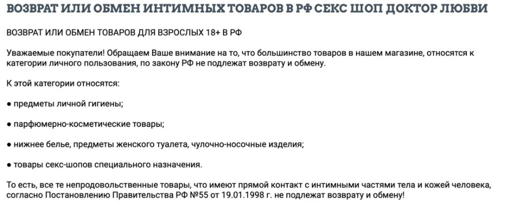 Товар относится к категории личного пользования. Непродовольственные товары, имеющие прямой контакт с интимными частями тела и кожей человека, согласно Постановлению Правительства РФ №55 от 19.01.1998 г обмену и возврату не подлежат. Внимательно ознакомьтесь с инструкцией по применению устройства и условиями перед покупкой