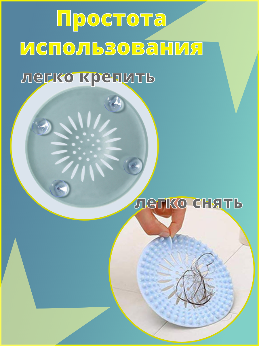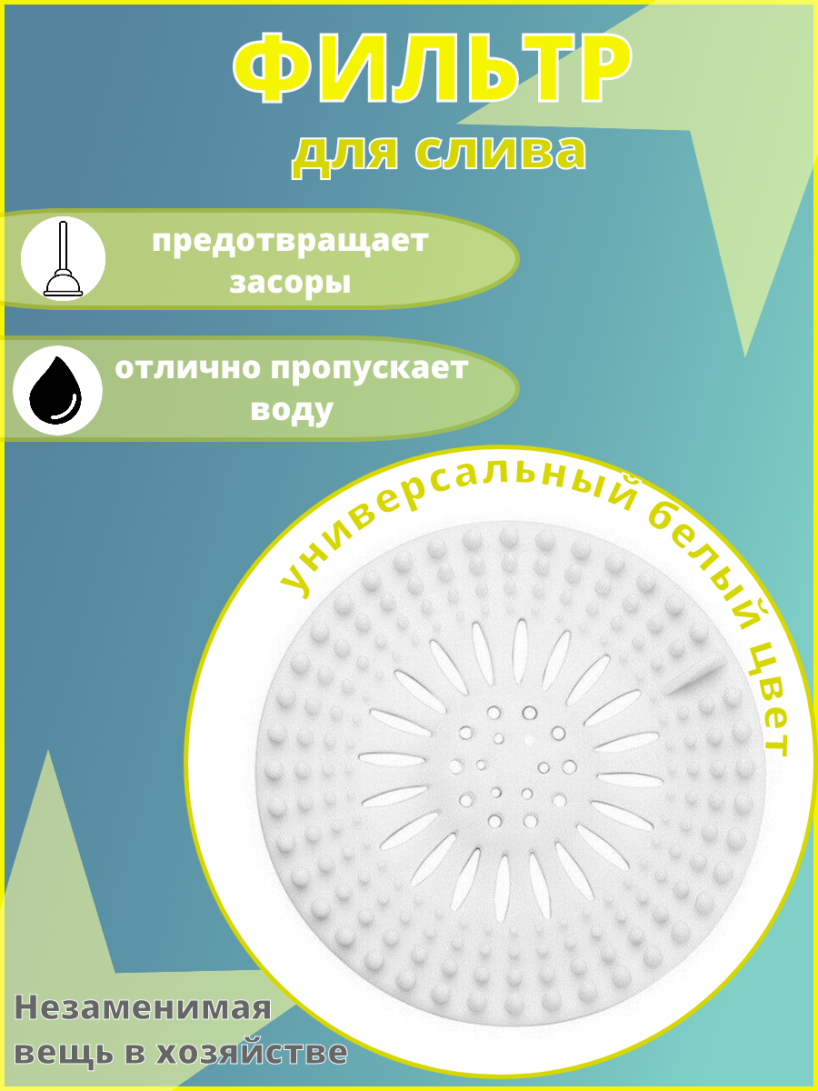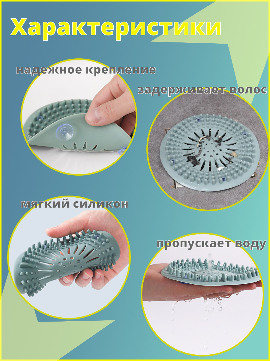 Фильтр для слива в раковину, ванну, душ изготовлен из безопасного высококачественного материала - силикона, используется для улавливания нечистот в раковинах и ванных, предотвращает забивание канализационных труб остатками еды и волосами. Улавливатель для волос имеет отверстия, которые не препятствуют сливу воды, но в тоже время не позволяют отходам, мусору и волосам попасть в канализационные трубы, препятствуя их засорам. Фильтр легко крепится на специальные присоски, без проблем чистится и моется. Может использоваться как фильтр для раковины на кухне, так и как улавливатель волос в ванной. Изделие поможет предотвратить засорение вашей раковины. Фильтр для раковины поможет поддерживать исправную работу слива.