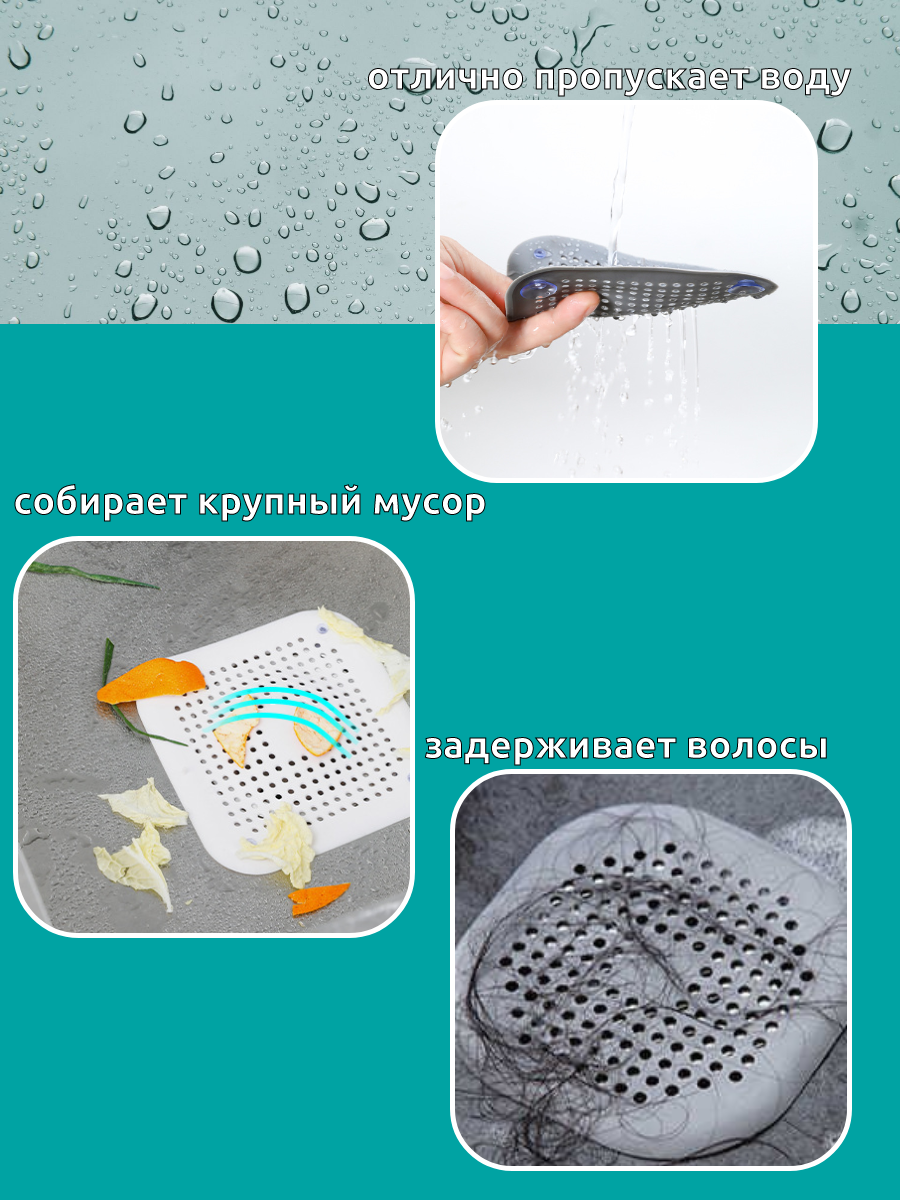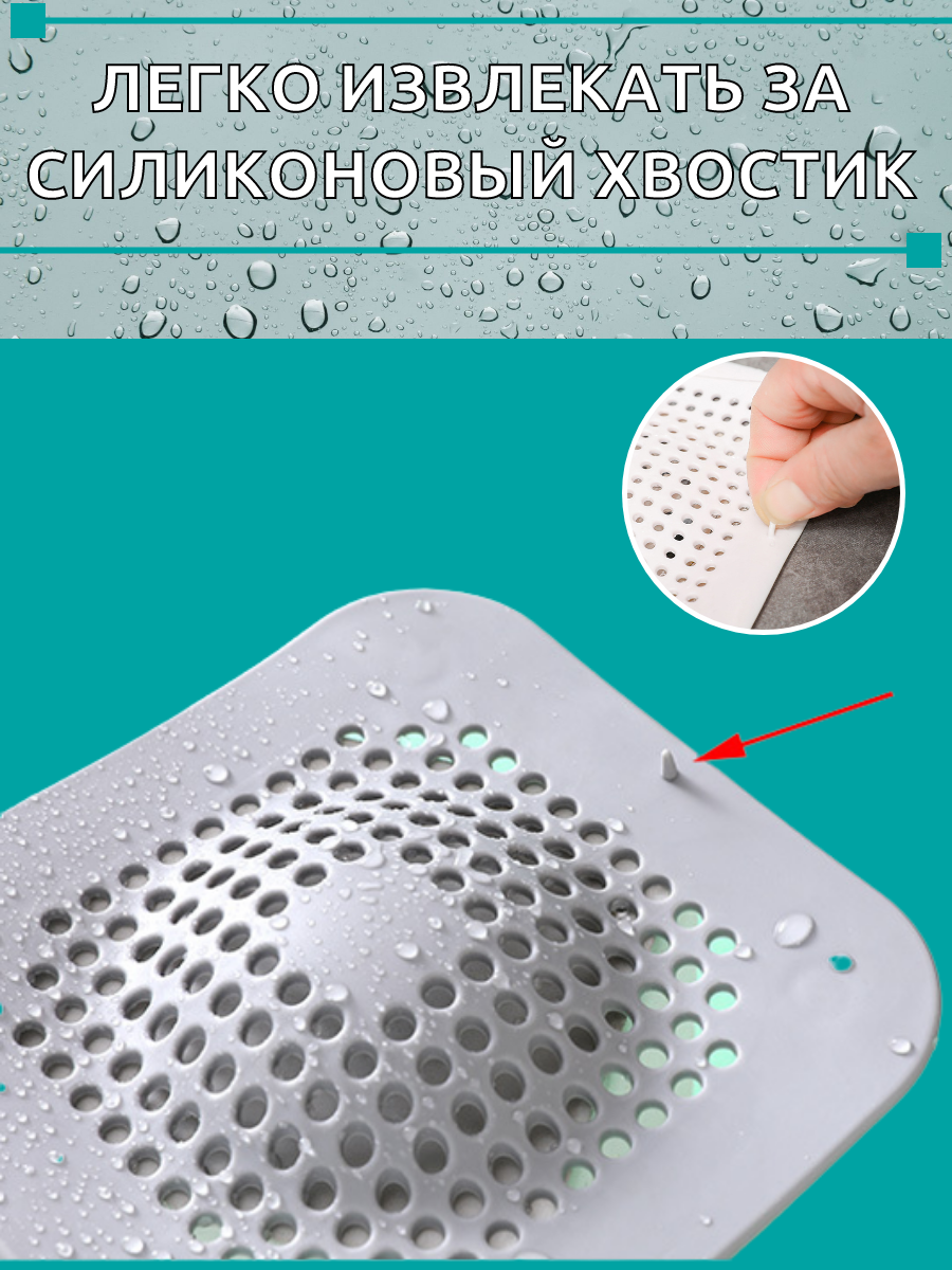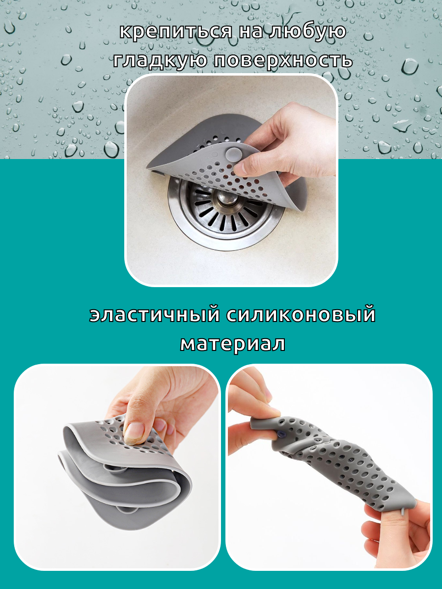 Фильтр для слива в раковину, ванну, душ изготовлен из безопасного высококачественного материала - силикона, используется для улавливания нечистот в раковинах и ванных, предотвращает забивание канализационных труб остатками еды и волосами. Улавливатель для волос имеет отверстия, которые не препятствуют сливу воды, но в тоже время не позволяют отходам, мусору и волосам попасть в канализационные трубы, препятствуя их засорам. Фильтр легко крепится на специальные присоски, без проблем чистится и моется. Может использоваться как фильтр для раковины на кухне, так и как улавливатель волос в ванной. Изделие поможет предотвратить засорение вашей раковины. Фильтр для раковины поможет поддерживать исправную работу слива.