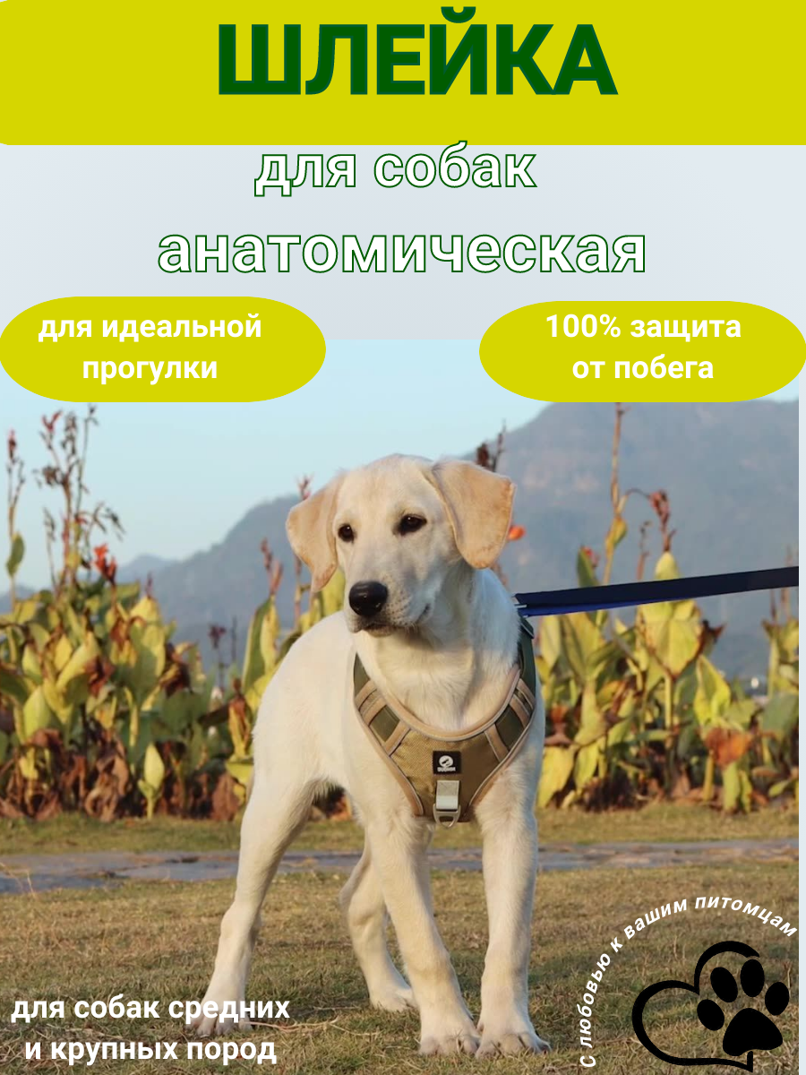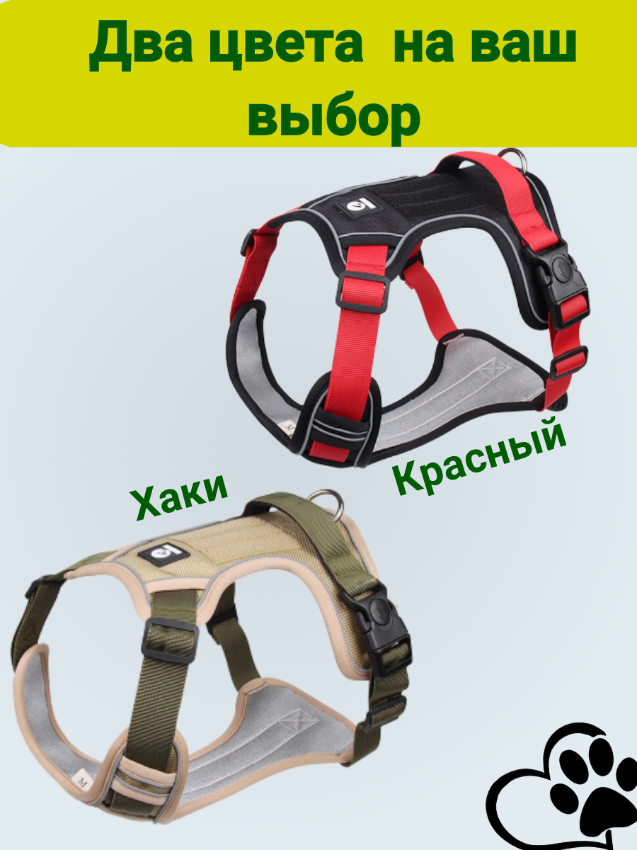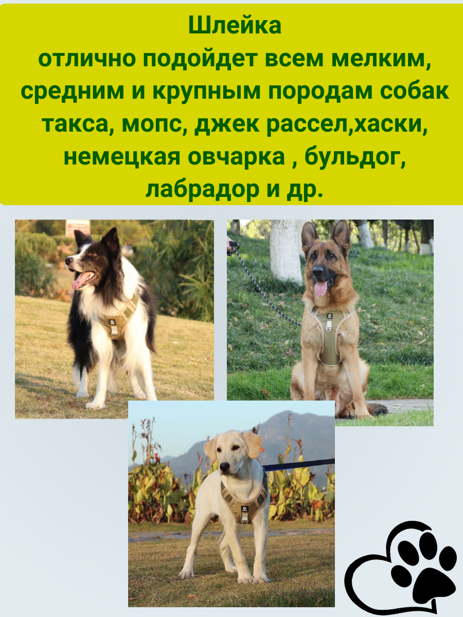 Шлейка для собак средних и крупных пород универсальная прогулочная тренировочная для дрессировки со светоотражателем жилет-трансформер хаки размер L