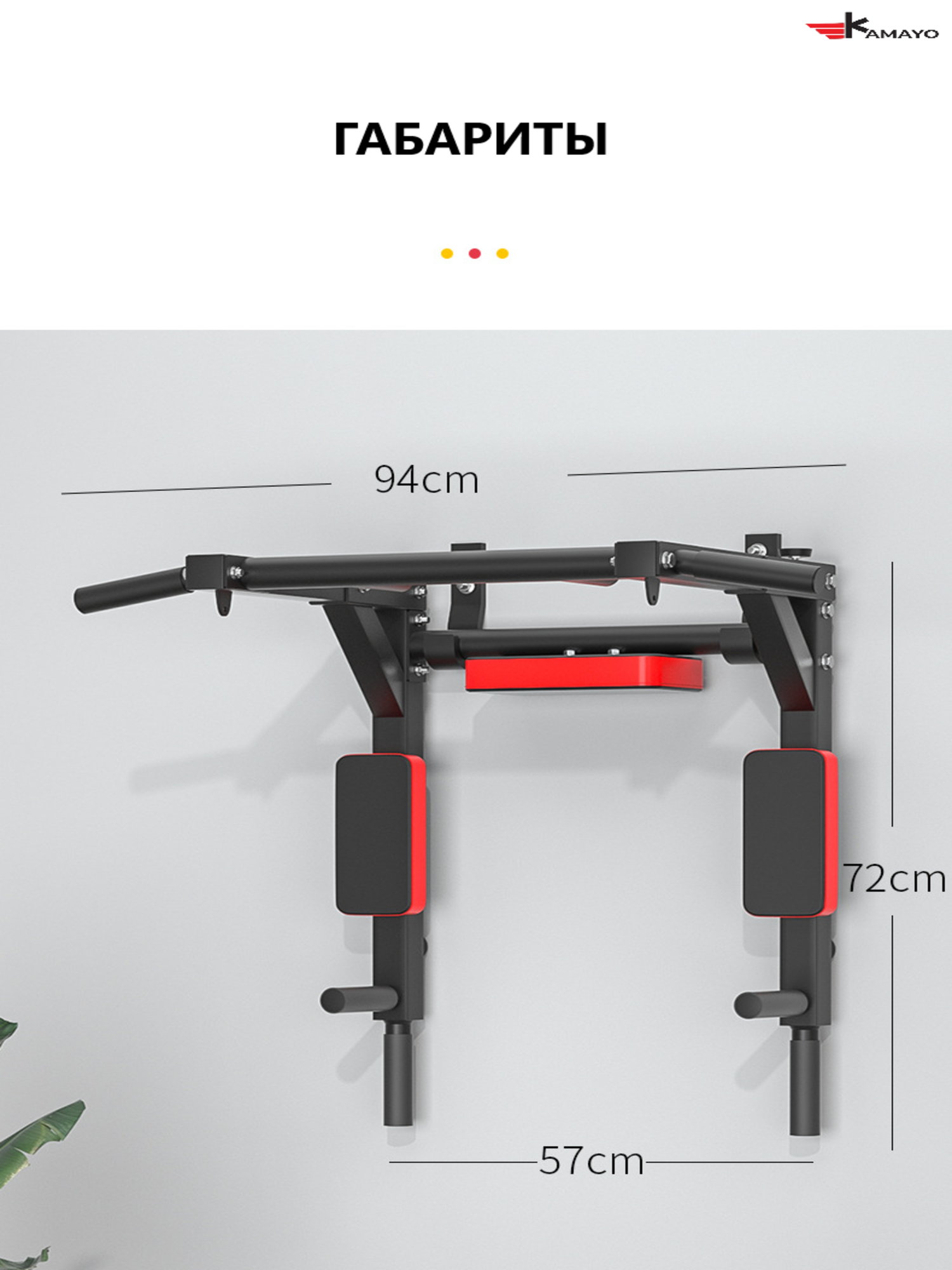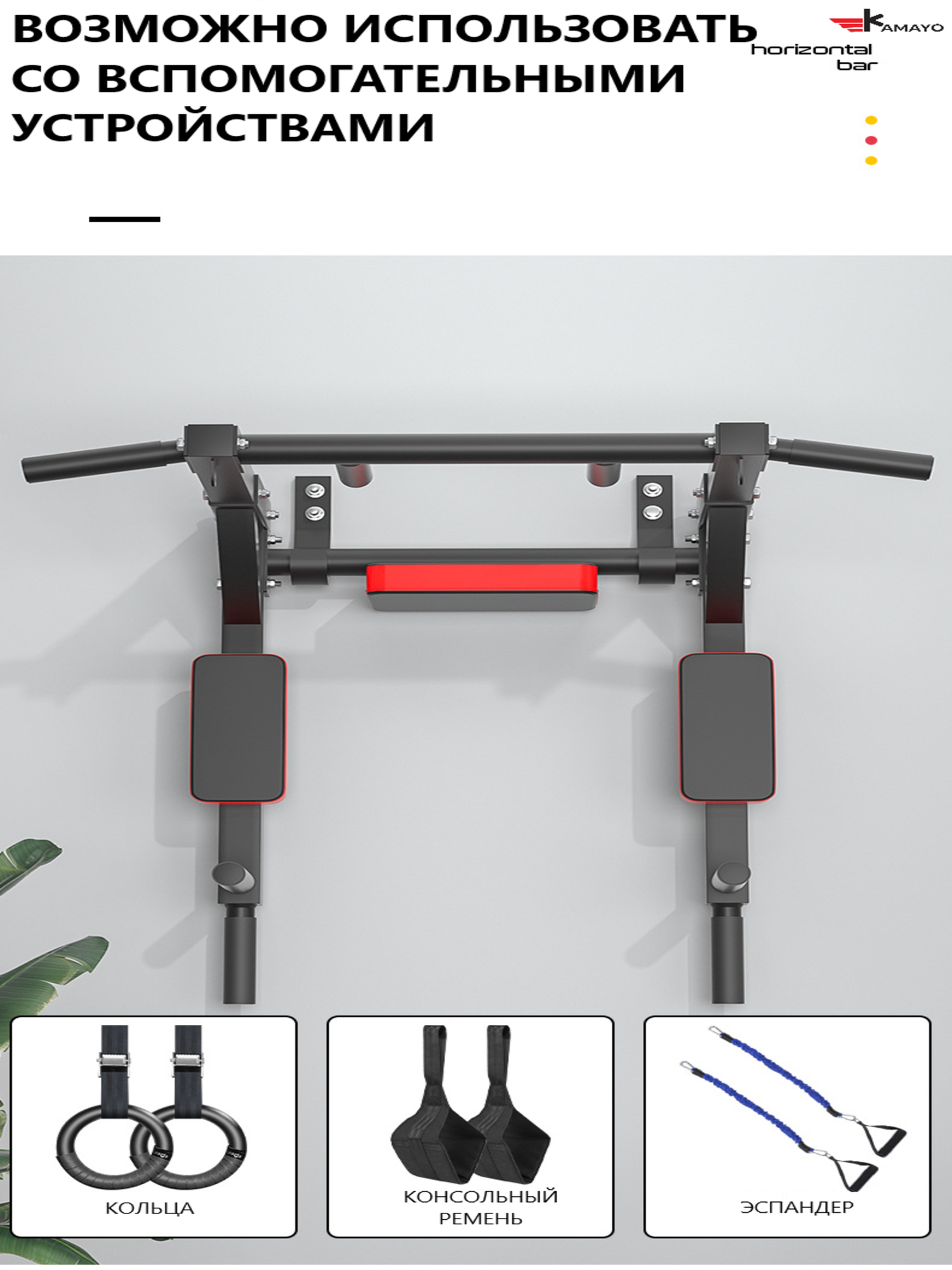 Турник KAMAYO для занятий фитнесом и спортом заряжен успехом! Настенный тренажер для домашних тренировок три в одном (кроссфит) эффективен для развития разных групп мышц. Спортивный тренажер производится из надёжного профиля 30*30. Для комфортных занятий и тренировок мы сами изготавливаем ручки из улучшенной резины. Не скользят, просты в уходе, удобны в эксплуатации, прослужат долго! В усиленных брусьях 3в1 для дома спинка плавающая, что позволит Вам комфортно выполнять упражнения на пресс. Подушки из износостойкой эко кожи, качественный поролон. На турнике мультихват можно выполнять комплекс упражнений на все группы мышц - подтягивания узким, широким и средним хватом; можно делать отжимания и упражнения на пресс. Вы проработаете мышцы спины, груди, рук и пресса, без посещения уличных площадок и тренажёрных залов! Все турники проходят контроль качества выдерживает нагрузку более 250 кг (при статической нагрузке с учетом если крепления были надежно установлены в месте установки турника). Настенные крепления (крючки, крепеж на стену) для оборудования из твёрдого металла толщиной 6,4мм (у большинства конкурентов 3-4мм). Занимайся на турниках и качайтело! Отличный подарок для каждого, это практично, и он будет всегда полезен pro для здоровья, сделайте подарок себе или своим близким уже сегодня!