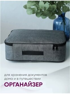 Отличный органайзер для хранения документов а4 от бренда КАО, который убережет ваши документы и личные вещи от повреждений и сохранит время на поиск нужных бумаг. Материал органайзера очень надежный, прочный и водонепроницаемый. Поэтому Вы можете не беспокоиться, если попадете под дождь. Его легко можно прицепить на чемодан за счет удобной резинки на задней части органазера. Кейс для путешествий незаменим в дороге, он поможет вам держать все принадлежности в одном месте во время поездок для всей семьи. Так же он подойдет для хранения всех документов дома в одном месте, в т.ч. детских документов. Разложите все паспорта свидетельства полисы каждый в свой отдельный большой отсек, в сумке много небольших карманов и кармашков для хранения бумаг разных размеров. Насладитесь идеальным порядком в своих принадлежностях! Модель сумки подойдет не только для хранения документов, в нем удобно разместить и канцелярию, туристические аксессуары, папки, блокноты, книги, рукоделие, и детские принадлежности для творчества, и гаджеты, и аксессуары для автомобиля, организация пространства. В оргонайзер контейнер для мелочей можно сложить все что вам нужно: личные вещи, мелочи для дома, ключи, офисные бумаги, паспорта, свидетельства о рождении, полисы, снилсы, дипломы, карты, наличные деньги, валюту, трудовые книжки, военные билеты и просто вещи, которые необходимы вам в дороге или дома. Так же данная дорожная сумка подойдет для небольшого ноутбука. Дорожный чемоданчик кофр мужской/ женский не займёт много места машине или багажнике автомобиля. Данный бокс для документов станет полезным подарком и необходимой вещью для тех, кто любит порядок, для мужчин, женщин, подруги, друга, девушки, парня, подростка, коллеги, жены, мужа, брата, сестры, любимой, любимому, дочери, дочки, сына, для друзей, маме, папе, невесте, жениху, молодоженам, начальнику, новоселам, для ваших близких или родственников. Этот товар может быть хорошим презентом с поводом и без, на любые праздники и события. Желаем Вам приятных покупок в нашем магазине!