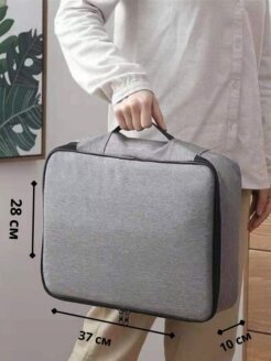 Сумка для хранения документов - отличный способ держать все документы в порядке и в одном месте, а также незаменимая вещь в путешествиях. Теперь все паспорта, дипломы, налоговые, медицинские и другие документы будут удобно разложены в органайзере и вам не придется долго искать важную бумагу. Преимущества органайзера для документов и вещей:- Сумку для документов удобно брать с собой в командировки и путешествия- Функция защиты от кражи с блокировкой паролем для защиты личных вещей (заводской пароль - 3 ноля (000))- Качественный износостойкий материал- Прочная обложка обеспечат сохранность документации и препятствует ее сминанию- Вы можете положить во второе отделение папки и бумаги формата А4- Сумка для хранения документов имеет специальный ремень для крепления на ручки чемодана. Используя органайзер для хранения документов, вы легко создадите полноценную систему аккуратного хранения вещей и документов. Размер 37х27х10.5см. Доставляется в сложенном виде.